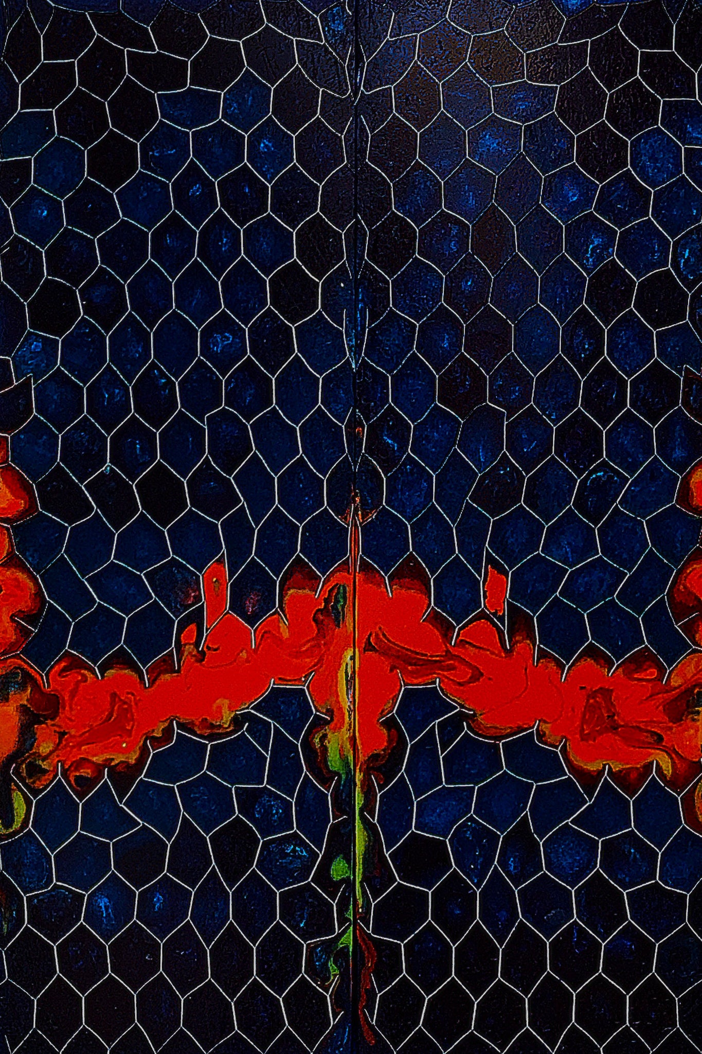 Distressed Aluminum Honeycomb: Easily workable with ordinary shop tools and securely bonded at the metal-resin interface through a unique 5-step etching process. Each piece is individually hand-cut and set in place to highlight the twisted geometry of the aluminum hex.