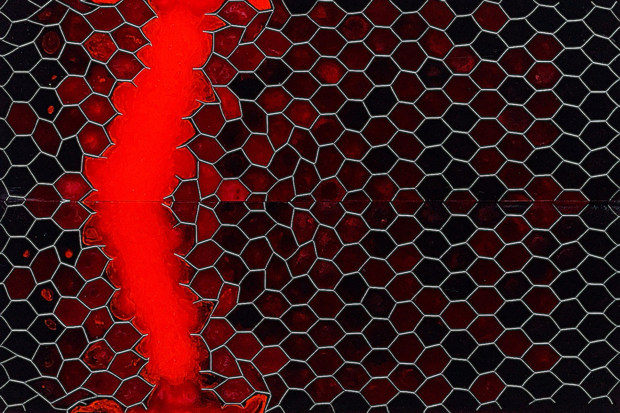 Distressed Aluminum Honeycomb: Easily workable with ordinary shop tools and securely bonded at the metal-resin interface through a unique 5-step etching process. Each piece is individually hand-cut and set in place to highlight the twisted geometry of the aluminum hex.