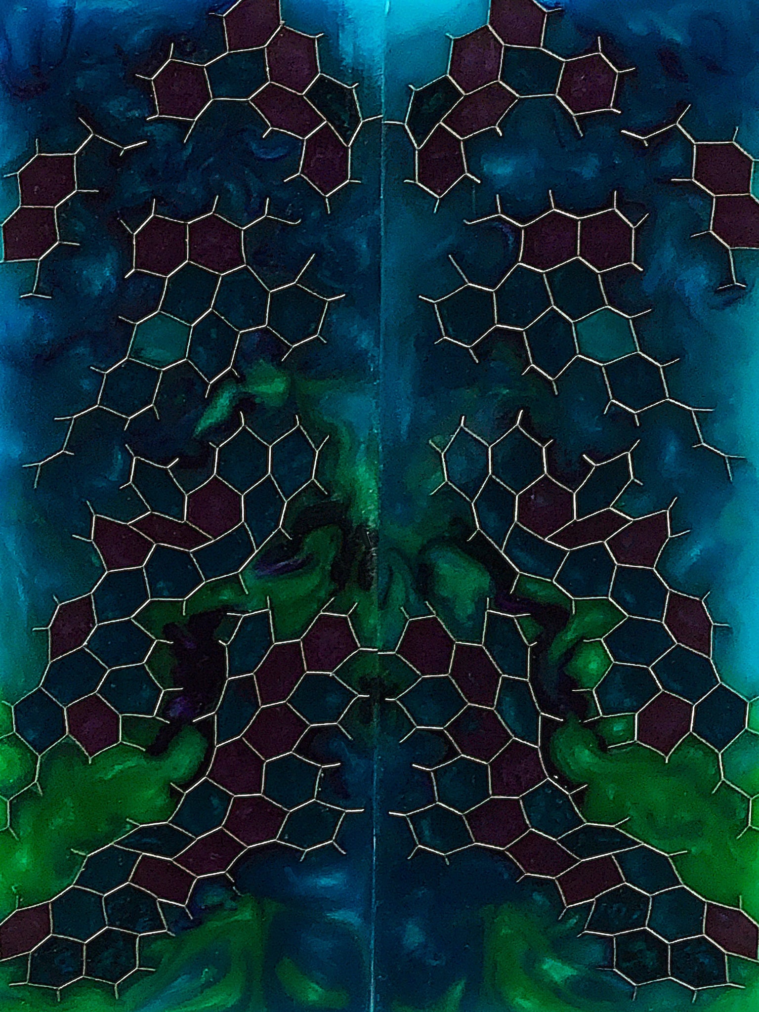 Distressed Aluminum Honeycomb: Easily workable with ordinary shop tools and securely bonded at the metal-resin interface through a unique 5-step etching process. Each piece is individually hand-cut and set in place to highlight the twisted geometry of the aluminum hex.